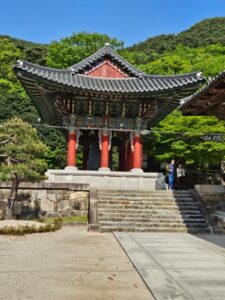 Der heutige Tag beginnt nach dem Frühstück sofort mit einer der schönsten Tempelanlagen, die wir bisher gesehen haben – wenn nicht sogar der schönsten: dem Hwaeom-Tempel am Hang des Jiri-Berges in Gurye. Gegründet wurde er im Jahr 544 n. Chr. von einem indischen Mönch und zählt bis heute zu den eindrucksvollsten Tempeln Koreas.