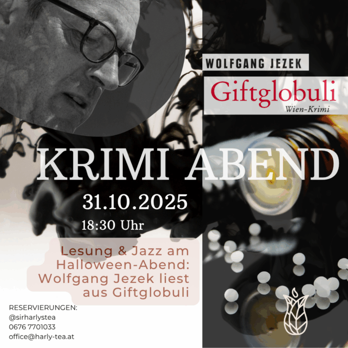 Begleitet wird der Abend von JazzMusik, Interview mit dem Autor sowie einer offenen Diskussion mit dem Publikum. Dazu servieren wir passende Teespezialitäten, die perfekt zum herbstlich-magischen Abend passen.