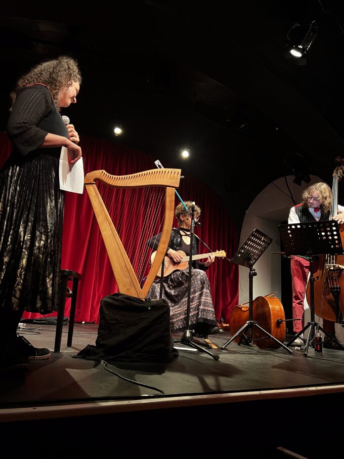 Milleflör sind die Schwestern Flora und Camilla Geißelbrecht, die seit über 20 Jahren zusammen musizieren und mit Bratsche, Cello, Gambe, Harfe, Ukulele und ihren beiden Stimmen auf besondere Weise harmonieren. Seit kurzem begleitet ihr Bruder Linus die beiden auf dem Kontrabass – für eine Extraportion Groove und tiefe Frequenzen. Das Ergebnis ist ein märchenhaft-makabres Hörerlebnis mit Elementen von Chanson, Jazz, Pop, Musical und Wienerlied.